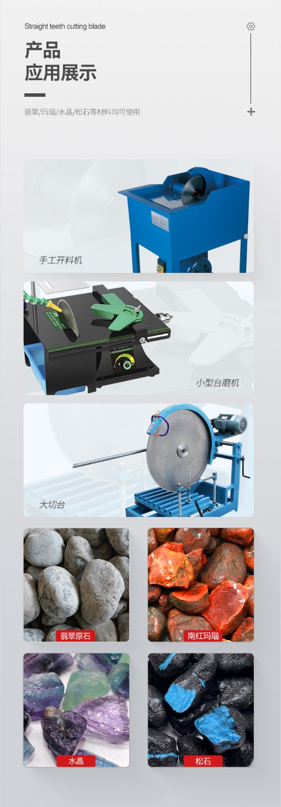 - 適用于玉石、翡翠、水晶、大理石、貝殼等