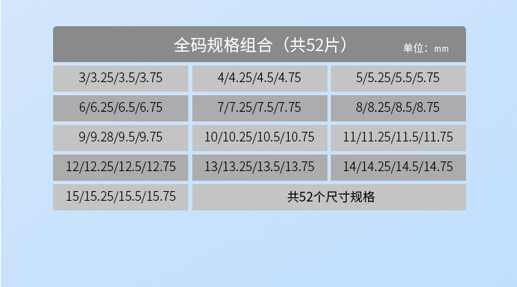 - 常規孔徑 3.0mm-15.75mm(52種規格)