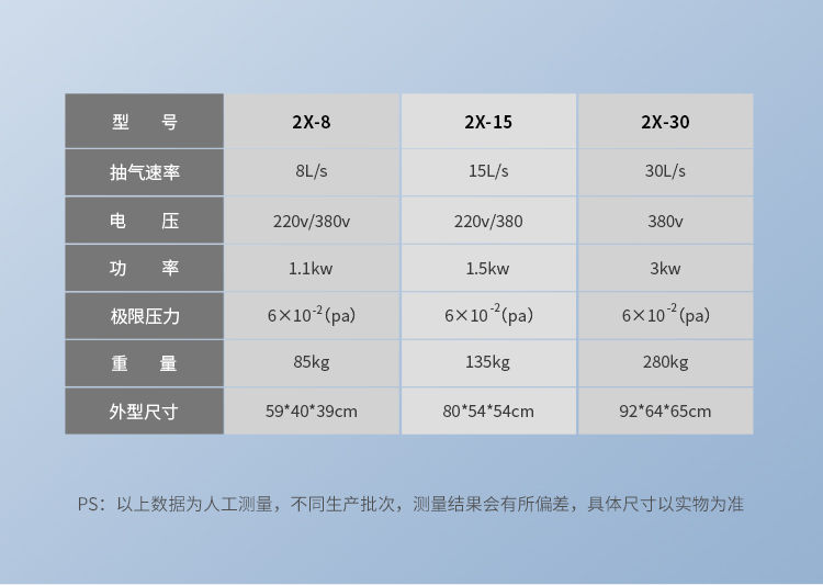 - 抽氣速率 8L/s 15L/s 30L/s